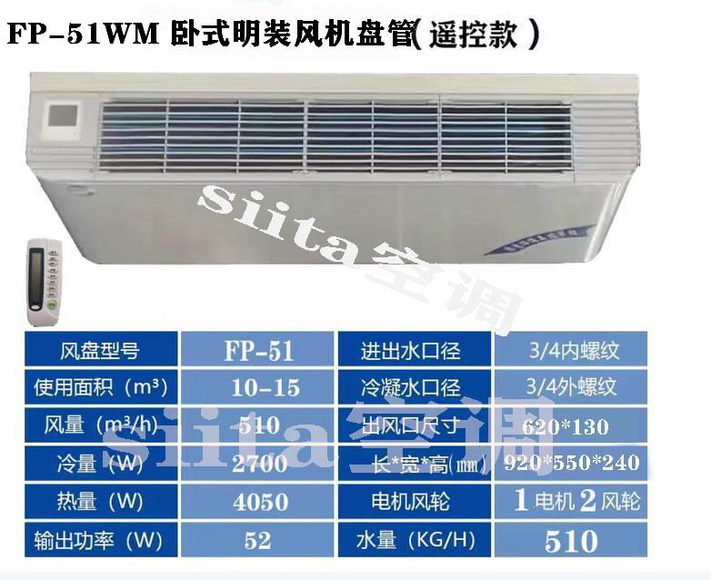 FP-51WM 是臥式明裝風(fēng)機(jī)盤管,額外風(fēng)量 510m3/h,適配 10-15㎡空間,低噪易裝、外觀適配裝飾,常用于住所、工作、商鋪等需靈敏溫控的場(chǎng)景。以下是具體參數(shù)與使用場(chǎng)景: